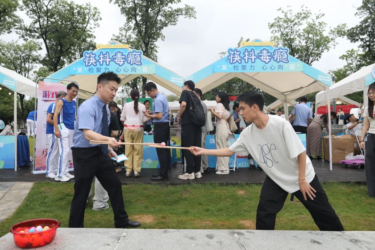 活动现场,检察官携手群众共同完成“筷抖毒瘾”游戏项目。每一次的精准传递,每一次的用力抖动,将“共拒毒品”的信念具象化,将法律知识变为“接地气”的快乐体验,努力实现“心心向蓉 共筑防线”的目标愿景。针对游戏中涉及的法律问题,检察干警们以通俗易懂的语言,揭示当前毒品的隐蔽性、伪装性和危害性,引导群众树立“健康人生、绿色无毒”的生活理念,鼓励群众积极参与到禁毒斗争中来。