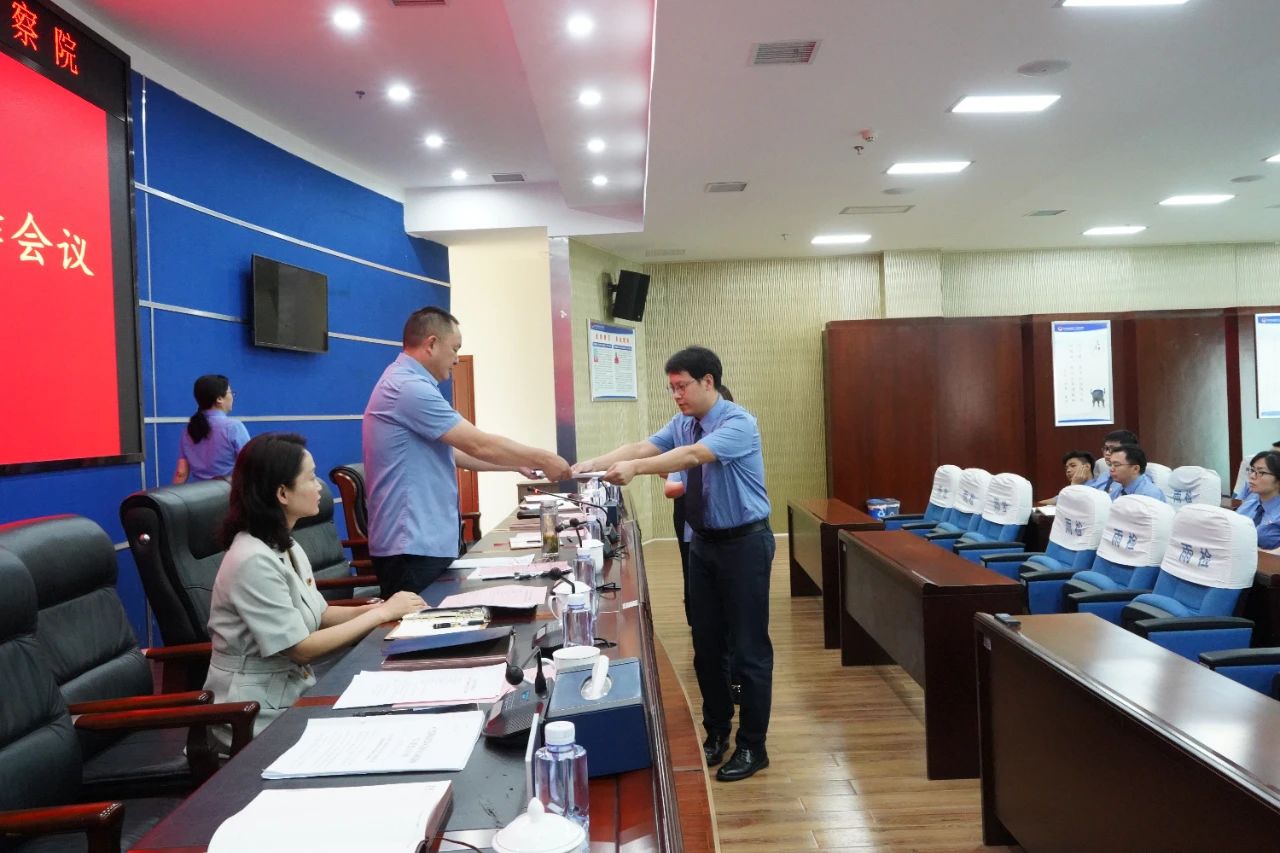 院领导、部门负责人向党组书记、检察长递交《党风廉政建设责任状》。