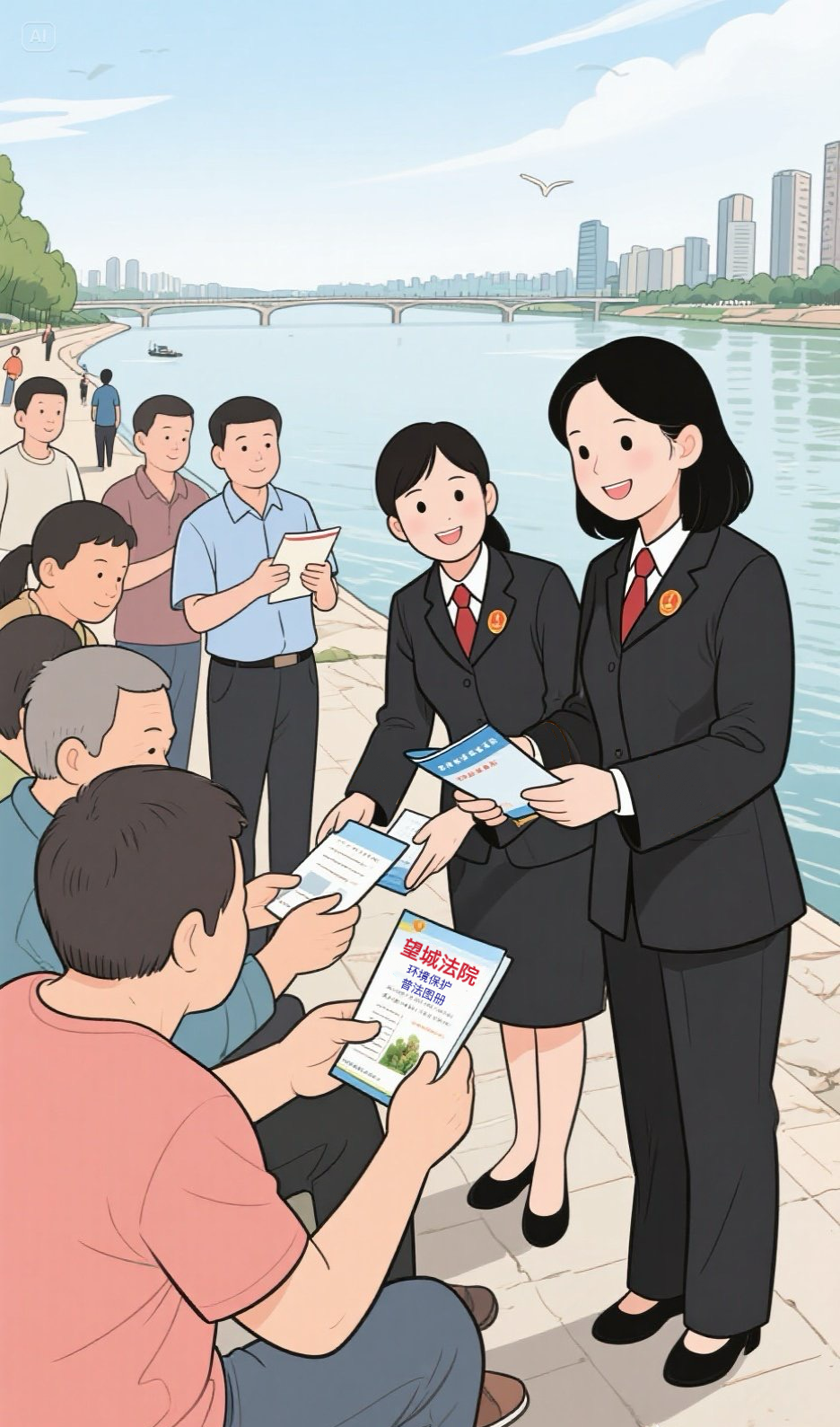 与此同时,另一支“江畔普法小分队”手持环保法治宣传单,主动走向在江边扎营、架杆垂钓的市民。她们以拉家常的方式,将保护水资源、遵守禁渔期规定、防范环境污染等法律知识送到群众“手边”,提醒大家在享受自然馈赠的同时,不忘守护母亲河的清澈与勃勃生机。